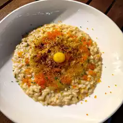 JEP signature rice, using kombu soup, crab soup, matsutake crab meat to cook pasta, then grilled crab paste to make a rich and fresh layer, finally mixed with quail egg yolk, the whole plate of pasta is very rich and sweet!