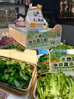 There are many fresh vegetables, clearly labeled as locally grown hydroponic produce, especially the Tang lettuce, which is particularly fresh, sweet, and crisp.