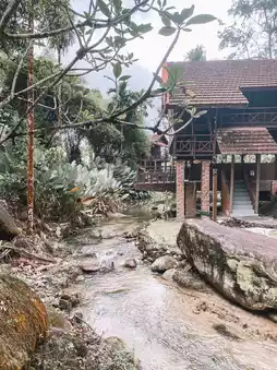The place was huge and there were river stream at the back of the villa. The sound of river so soothing and calming. The swimming pool also combined with river so that it looks like we were swimming in the river. Got small turtle pond and fish sanctuary.