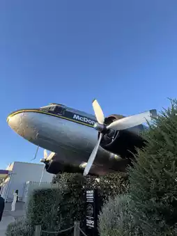 ✅ A real plane is parked at the door of the store, with the nose and propellers completely preserved