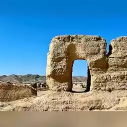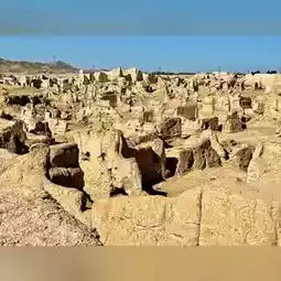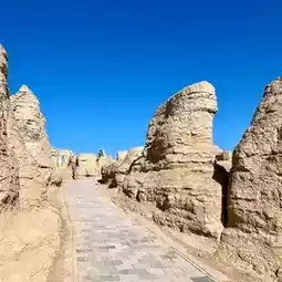 The Jiaohe Ancient City is located on a terrace between two riverbeds in the Yarnaizi Valley, approximately 10 kilometers west of Turpan City in Xinjiang. A hundred-meter-wide river channel diverges from the northern side of the terrace and merges into one in the south, creating a natural barrier for the city. The terrace rises approximately 30 meters above the surrounding riverbed, creating a seemingly chiseled landscape on all sides, offering a strategic position on the elevated terrain. The city site atop the terrace is approximately 1,650 meters long and 300 meters wide at its widest point, covering a total area of approximately 37 hectares. From an aerial view, it resembles a willow leaf.