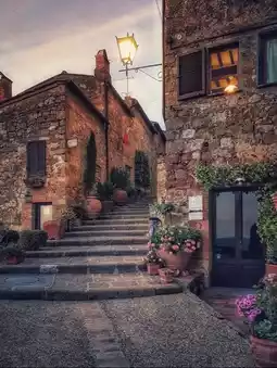 🌿 Renaissance streets and flower-adorned balconies at Palazzo Piccolomini.