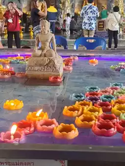 Make merit, pray, and ask for blessings at this must-visit location near Bangkok. Wat Khao Tham Thiam boasts a magnificent collection of Buddhist art, the unseen carved stone Buddha image, "Luang Pho U Thong." The natural scenery is truly breathtaking! There's also a market in front of the temple, and plenty of food to choose from.