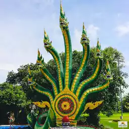 It is an interesting landmark tourist attraction. When you enter, you will see the 21-meter-high Phra Pathom Chakraphat statue in the world-opening posture. It is an auspicious and principal Buddha image. Inside, there is the Glass Chakraphat Cave, which has the statue of Phra Ananta Naga and the statues of Chao Pu Sri Sutho and Chao Ya Sri Pathumma for you to pray for blessings, fortune, and career. This place is famous for fortune and job transfers. At Nakwat Park, there is also an ancient Naga kingdom, a replica of Angkor Wat, the Naga of 4 countries, the land of the Khmer Naga.