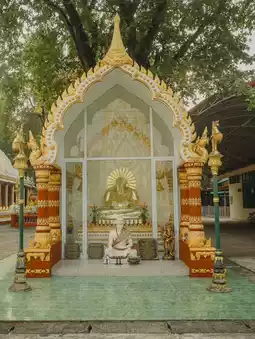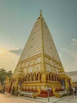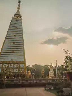 Wat Phra That Nong Bua, Ubon Ratchathani Province, is the location of Phra That Chedi Sri Maha Bodhi or Phra That Nong Bua, a large chedi modeled after the Buddha Gaya Chedi in India, the place where the Buddha attained enlightenment. It was built in 1957 to symbolize the 25th century of Buddhism. Inside the chedi are relics of the Buddha for people to pay homage to.