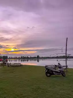 Wang Kang Hung’s tent site is a wide area by the river with no large trees blocking the view, making the sunset in the evening stand out especially, especially the golden light hitting the water surface, perfect for taking photos or enjoying the view before the sun sets.