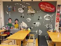 This famous meatball noodle shop in Ubon Ratchathani has been serving deliciousness for over 80 years. The signature dish is their homemade meatballs, a recipe passed down from generation to generation. This long-established restaurant has been a favorite among Ubon residents for so long that it has had to expand to accommodate more customers. Today, we'll review the first branch. Located at the intersection of Wat Supatnaram, this large shop offers both air-conditioned and outdoor seating. Both offer a pleasant atmosphere and ample seating, so choose your preferred seating option.