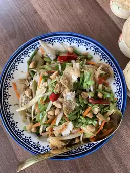 Som Tam Kratoey: Spicy and full of ingredients, packed with authentic Isan flavors.