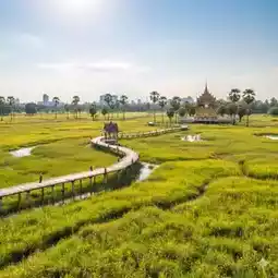 End your day with a relaxing stroll at "Thung Si Muang" 🌸, a central city park filled with shady trees and vibrant flowers. It's perfect for unwinding, taking photos, or enjoying a picnic with family and friends 🧺✨. This park also hosts major provincial festivals, such as the Candle Festival 🎉, which is full of color and devotion.