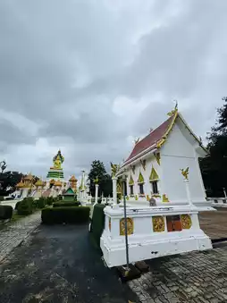 Walking around the temple, I felt the tranquility, breathing in the fresh air, and feeling relaxed. It's perfect for a relaxing getaway with friends, a place to chill, take beautiful photos, or for those who enjoy making merit. It's a complete experience, filled with merit and joy, and I'll return home with smiles.