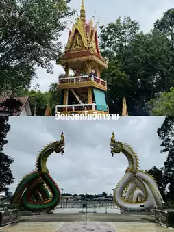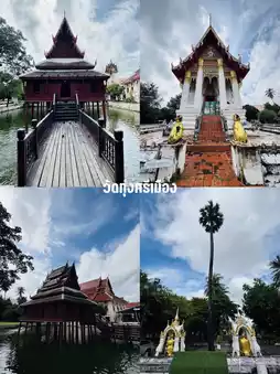 A temple by Thung Si Mueang Public Park, offering a lush atmosphere. The highlight is the Tripitaka Hall in the middle of the water. Enjoy strolling and taking photos.