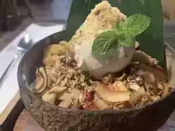 It’s like a parfait with plenty of fruit and ice cream inside a coconut shell.