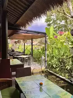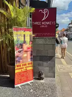 This cafe is located on Ubud's main street and Monkey Forest Road.