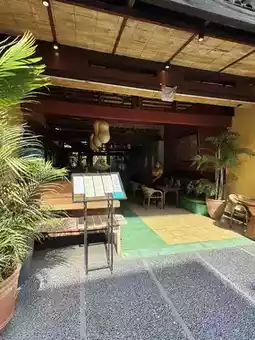 The cafe stretches far back, with seats at the back offering views of the rice fields. 🌾