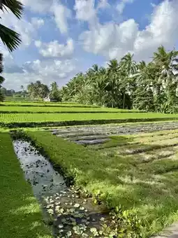 As the sun began to rise, the light filtered softly through the palm trees, illuminating the vibrant greens of the rice terraces. Farmers were already at work, tending to their fields, while the air carried the scent of earth and morning dew. It felt like stepping into a painting — calm, vivid, and full of life.