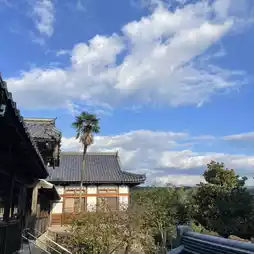 It looks ordinary from the outside, but the traditional tiled roof and the quiet scenery of the grounds were really impressive. As you can see in the picture, the temple architecture has a strong Edo period atmosphere, and the mountains and sky spread out to the side blend together to create a truly picturesque scene.