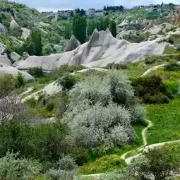 The valley features winding trails surrounded by fairy chimneys, rock formations, and lush greenery. The dovecotes carved into the cliffs add a distinctive charm, while the expansive views of Uçhisar Castle and Göreme create a breathtaking backdrop. The atmosphere is peaceful and picturesque, making it ideal for walking, photography, and quiet exploration.