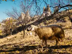 The sheep followed, their bells jingling. One stopped at an old door in the rock—the very one where people once lived. The old man pointed and explained that it used to be his parents' house. Now it's a shelter from the sun and a place for the sheep to rest in the heat. 📍 Location: Between Uchisar and Pigeon Valley, Cappadocia, Turkey.