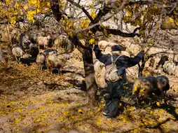 Suddenly, an old man emerged from behind a rock with some sheep.