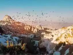 Since ancient times, dovecotes—small square holes—have been carved into these tuff pillars, still inhabited today.