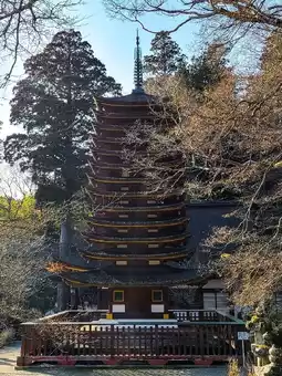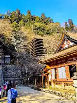 The highlight of the shrine is its unique 13-story wooden pagoda — a rare structure in Japan and a stunning centerpiece especially during autumn when the surrounding maples burst into brilliant reds and golds. The peaceful forested path leading up to the shrine creates a meditative atmosphere, and the elevated position offers panoramic views of the surrounding countryside.