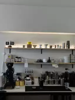 The shop is a small townhouse with a coffee shop downstairs. There are not many tables. Decorated in white and wood tones, it looks comfortable to the eyes. There are small corners for taking pictures. It is not crowded. It is suitable for sitting and sipping coffee and chilling.