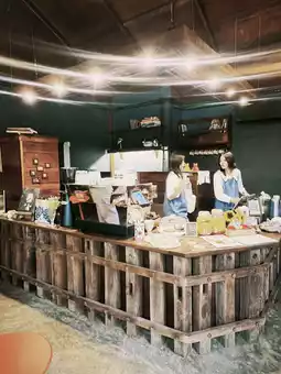 The shop features a warm, lovely wooden tone. The front area is a small cafe with a cute vibe and plenty of photo spots, perfect for snapping cool Instagram photos.