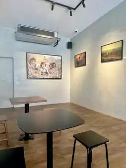 TEMP Creative Space & Co is a cafe with a gallery-like feel. The space is spacious and airy, and features paintings, drawings, and a gallery for you to browse. The seating isn't crowded. The menu offers both coffee and non-coffee drinks, as well as cakes and breads. We ordered a delicious donut. They also offer a points system, so it's definitely worth a visit if you're in the area. The shop is beautiful and offers many photo opportunities. The owner constantly changes his work to decorate the interior, which is great. I love this style of cafe; it has something for everyone.