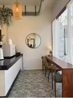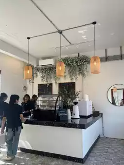 This white-toned cafe in Udon Thani offers food and drinks. Most dishes are stir-fried basil, and the flavors are delicious. There are plenty of photo spots. The two floors have a great atmosphere, with the second floor located on the edge of Nong Prajak in Udon Thani province, overlooking a park.
