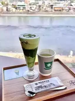 Nestled near to the Byodo-in Temple and offering stunning views of the Uji River, Nakamura Tokichi Byodo-in is a tranquil escape known for its exceptional matcha creations. The booth seating by the window allows guests to enjoy not only their delicious offerings but also the breathtaking river scenery, making it the perfect place to relax and indulge after visiting the temple.