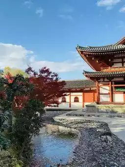 Stroll along the Aji Pond, which resembles the Pond of Ultimate Bliss, and admire the reflection of the Phoenix Hall from different angles, feeling the Heian people's pursuit of ultimate bliss from a thousand years ago.