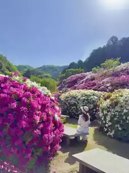 In a large garden of about 5,000 tsubo, there are 20,000 azaleas in pink, purple, and white🩷💜🤍, which will soon be in full bloom🌺🌺🌺