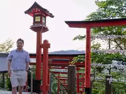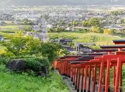 A hilltop shrine guarded by 91 red torii gates and fox statues