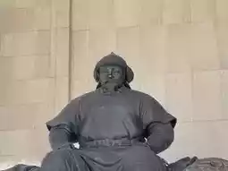 At the north end of the square is a magnificent group of Genghis Khan statues, with a seated statue of Genghis Khan in the middle and statues of his son Ogedei Khan and grandson Kublai Khan on both sides.