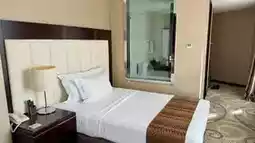 Situated right off the main square, this hotel provides a comfortable stay with excellent service. The staff efficiently arranged an airport transfer and even provided me with an early room check-in, which I greatly appreciated. The lobby area is spacious, featuring intriguing art and an impressive chandelier. I stayed in a corner room on the thirteenth floor, offering a fantastic view over the square and plenty of natural light. The heating couldn't be completely turned off, but the windows open, though city noise is considerable. Fortunately, there was no noise from other rooms or the hallway. It was inconvenient that no electric sockets were near the bed, yet the room was otherwise comfortable. The pillows were excellent and everything was clean. The bathroom was roomy with a window into the main room, featuring a shower over the bathtub. Robes were absent, but slippers and small toiletry bottles were provided. Housekeeping was efficient, always respecting the 'do not disturb' light. Breakfast was relaxing, featuring a live egg cooking station and a reasonably varied buffet. The “Premium Lounge” on the top floor was fantastic—great service, views, live music on some evenings, and a good food menu, all well presented and cooked. It was a perfect spot to unwind in the evening and a standout feature of the hotel. I would definitely consider staying here again and recommend it for its central location.