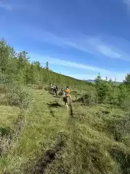 Reaching the Taiga is an adventure in itself. The journey often involves horseback riding through rugged mountains, alpine meadows, and dense larch forests, since vehicles cannot access the remote camps. Riding a Mongolian horse through this wild landscape feels like stepping back in time, with each turn revealing untouched wilderness.