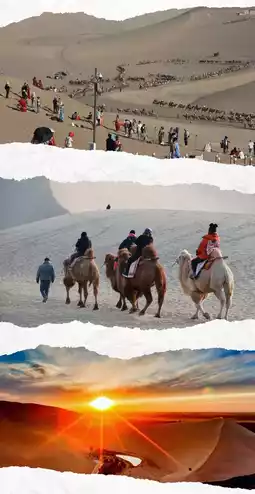 - Afternoon: Head to Mingsha Mountain Crescent Lake. You can choose to ride a camel up the mountain to enjoy the desert scenery and the beauty of Crescent Lake. Watch the sunset in the desert in the evening.