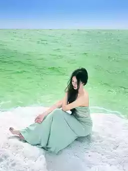 ◦ 🌊 Mirror of the Sky: Early morning with no wind on the lake surface, wear a white dress standing in the shallow water, invert phone to shoot reflection (bring transparent shoe covers).