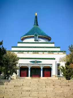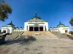Genghis Khan Park is located on the top of Khan Mountain in the north of Ulanhot City. The Genghis Khan Temple is located in the park and is the only temple in the world that commemorates Genghis Khan. It is a key cultural relic protection unit in Inner Mongolia Autonomous Region. The temple was designed by artist Nailer and construction began in 1940. It was completed on October 10, 1944. The temple faces south and is shaped like the Chinese character for "mountain" (山) with a round top. The main hall is 28 meters high, and the east and west side halls are 16.62 meters high. The roofs are connected by circular corridors, each with three small spires covered with green glazed tiles. Genghis Khan Park is a comprehensive park that integrates historical protection, exhibition, and square landscape, and combines the architectural styles of the Mongolian, Han, and Tibetan ethnic groups.