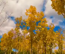The red is from the maple forest, with leaves like small flames burning brightly, clustered on the branches. When the wind blows, the whole tree’s “flames” sway, and even the air seems to be warmed. The yellow comes from the ginkgo trees, their fan-shaped leaves carpeting the ground, rustling underfoot. Looking up, the golden canopy shines like a gilded edge framing the sky.