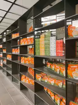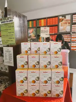 The shop carries a range of classic blends and limited-edition or fusion teas, including popular picks like Palas Supreme, Bukit Cheeding, Gold Blend, and seasonal fruit infusion teas such as peach, mango, some of which are exclusive to the centre.