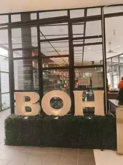 Tea leaves come attractively packaged in gift‑worthy tins and boxes. Aside from tea, you can find branded items like aprons and other BOH merchandise