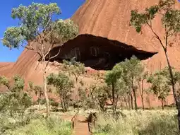 Watch Uluru glow as the sun peeks over the horizon, igniting the rock in brilliant shades of gold and crimson. Set out on the full base hike; follow the well-marked trail for an up-close look at ancient rock art and hidden waterholes, pausing at scenic points like Mala Walk for your "insta-worthy" shots. Bring plenty of water and a hat, as shade can be scarce. Be sure to set out for your walk on time as you don’t want to be outside during the midday sun.