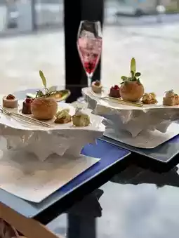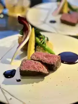 The salmon main dish stood out with the fragrant herb breadcrumbs, perfectly matched with the tartar sauce. The Wagyu beef steak was tender, complemented by a deeply flavored sauce.
