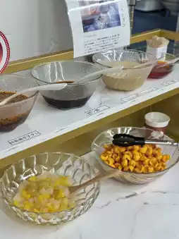 I chose the "Spicy Mala Tang Soup." For noodles, I picked corn noodles and Longkou vermicelli. My toppings included enoki mushrooms, crab miso-filled meatballs, lotus root, corn, red kamaboko, sausages, shrimp balls, pork, dumplings, and banana shrimp, among others. I couldn’t resist and ended up choosing a lot!✨