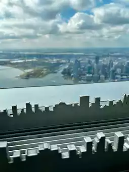 Landmarks like the Statue of Liberty, the Empire State Building, and Brooklyn Bridge appear like pieces in a grand urban puzzle. The atmosphere is calm yet filled with excitement as visitors take in the view, cameras ready. Watching the sunset from up here is unforgettable, with the city lights slowly taking over the skyline. One World Observatory captures the true spirit and energy of New York from above.