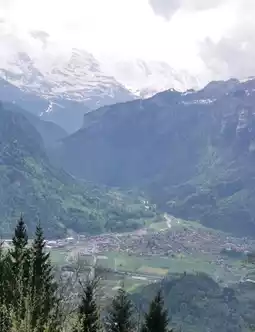 The summit provides 🏞️🏔️panoramic views over Interlaken, nestled between Lake Brienz and Lake Thun, with the iconic trio of peaks—the Eiger, Mönch, and Jungfrau—in the backdrop.