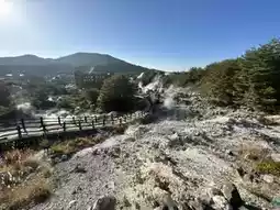 We visited Unzen Jigoku on a cool misty morning, and it honestly felt like stepping into another world. The thick white steam rising from the ground, the smell of sulfur hanging in the air, and the bubbling, hissing earth beneath our feet—it was eerie, fascinating, and beautiful all at once.