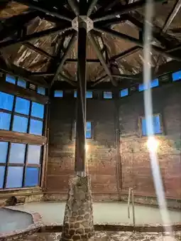 The wooden bathhouse is spacious and open, and soaking in the steam is truly a blissful experience.♨️✨
