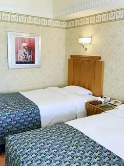 Even with a short stay, the Disney Ambassador Hotel gave us so much joy! The garden was super cute, filled with spring flowers in full bloom – perfect for a little stroll or photo time. We stayed in a Mickey-themed room, which was just the right amount of Disney magic to make our hearts happy.